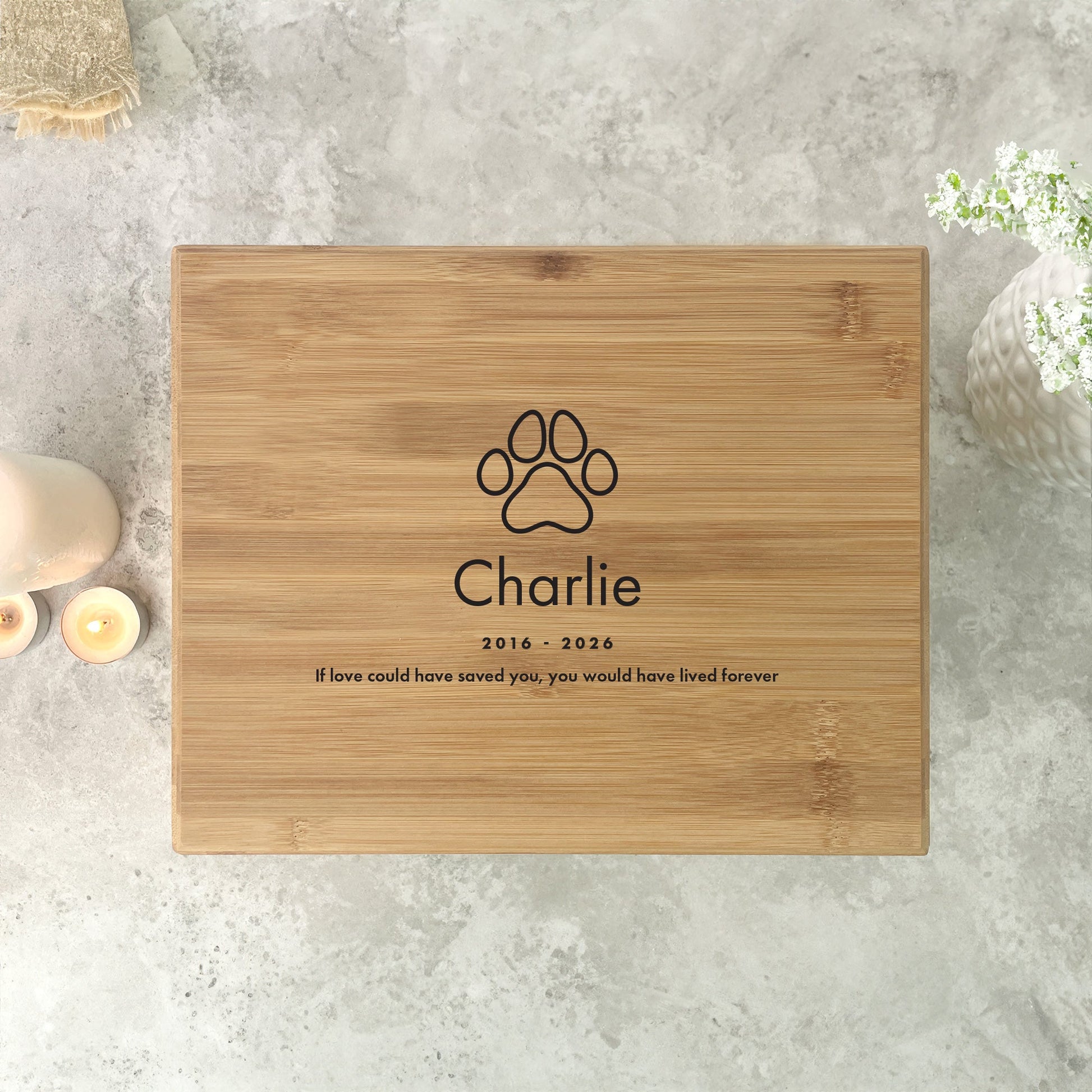 Personalised Bamboo Urn For Pet Cremation Ashes - Dog/Cat Design