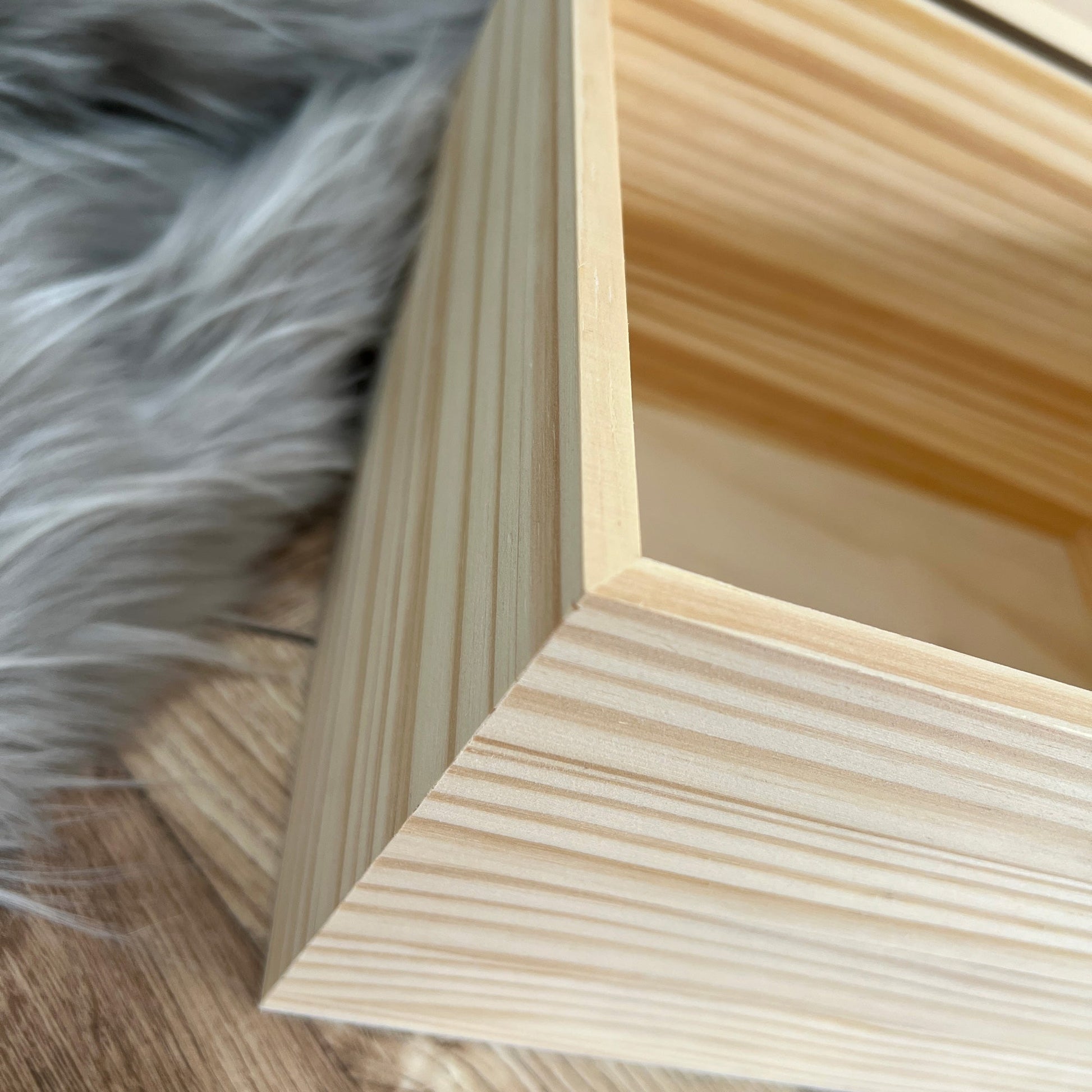 Easily find the perfect baby keepsake box, a great gift for new parents with 5 size options to choose from. Our boxes are made from natural pine wood, each with a unique wood grain pattern and a secure silver clasp and metal hinges. Whether you need a spacious box for storing memories or a smaller token gift.