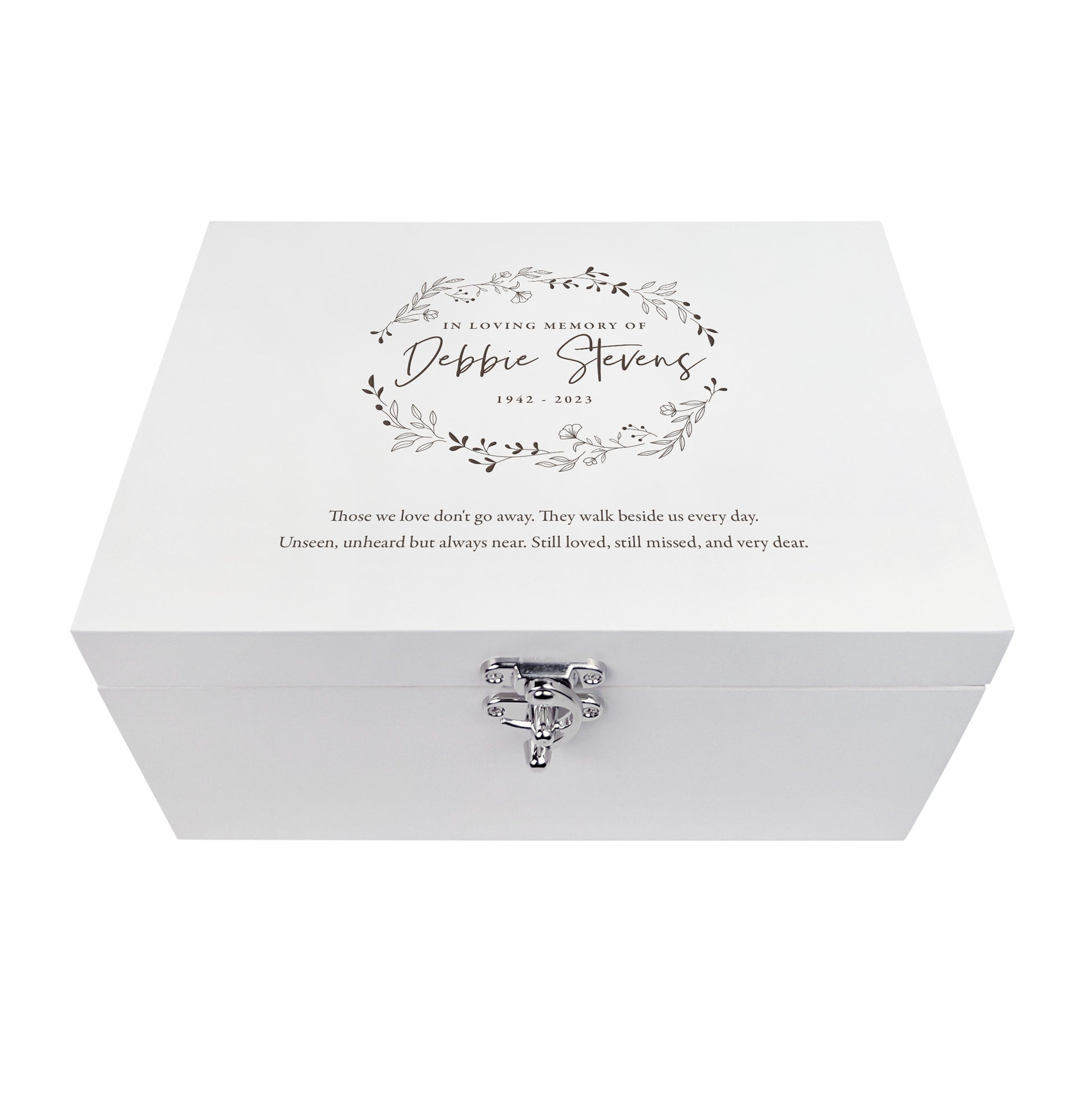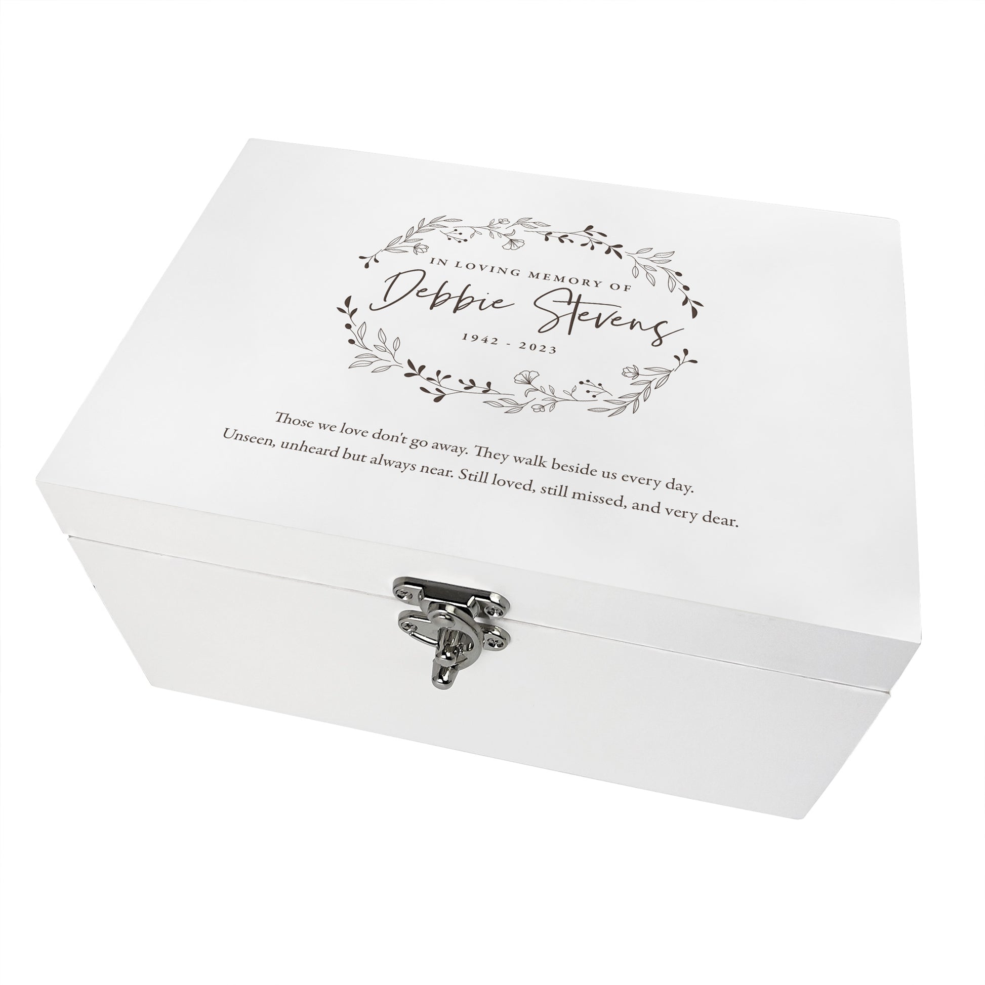 Personalised Wreath White Wooden Engraved Keepsake Memory Box - 3 Sizes